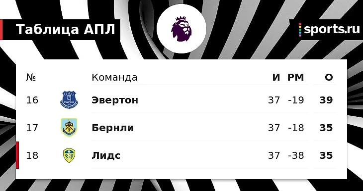 Теперь последнее место в АПЛ прямо на финише сезона разыграют «Бернли» и «Лидс». Первые встретятся с «Ньюкаслом», вторые – с «Брентфордом». При этом «Бернли» достаточно сыграть не хуже конкурентов – у «Лидса» сильно хуже разница мячей.