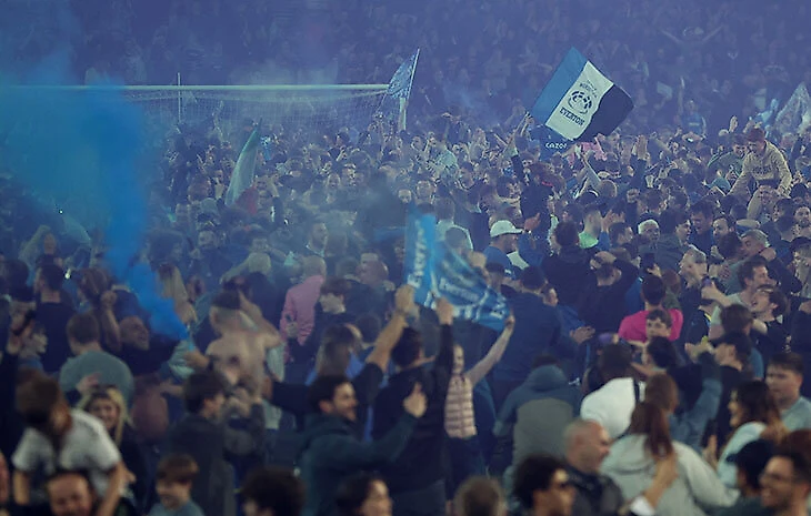 И на стадионе началось безумие. Болельщики выбежали на поле – да, прямо на 85-й минуте!