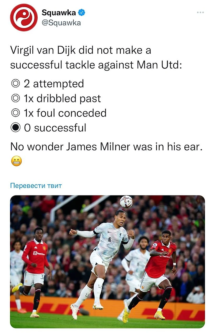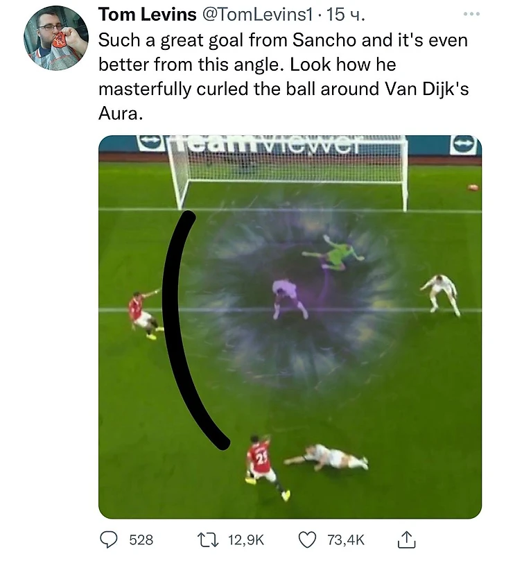В понедельник «МЮ», который стартовал в АПЛ с двух поражений, неожиданно обыграл «Ливерпуль» (2:1). Счет открыл Джейдон Санчо – англичанин, оказавшись перед воротами, сначала сделал ложный замах, а затем уложил мяч с правой в противоход Алиссону. Но в соцсетях все обсуждали не мастерство Джейдона, а странные действия Вирджила ван Дейка.