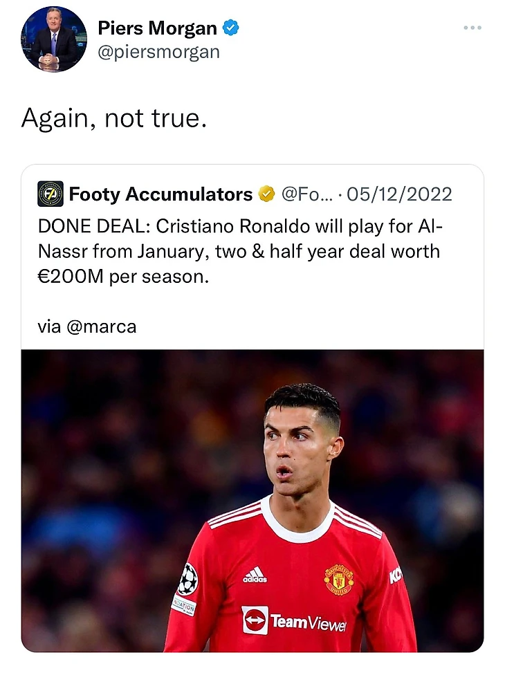 Кто-то до последнего не верил в то, что Роналду уедет на Ближний Восток. Булыкину простительно, но вот от Пирса Моргана мы ждали большего.