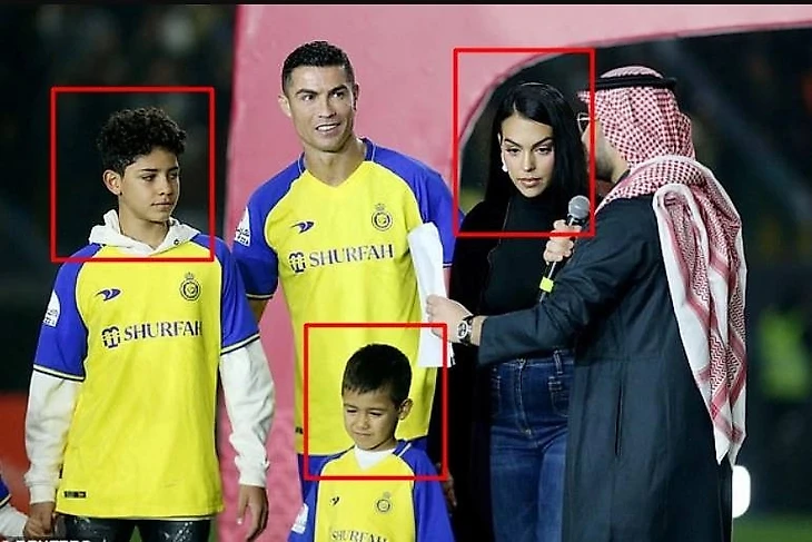 Презентация в Саудовской Аравии тоже подарила нам пару выдающихся кадров. Пока сам Криштиану улыбался, члены его семьи были не так уж довольны.