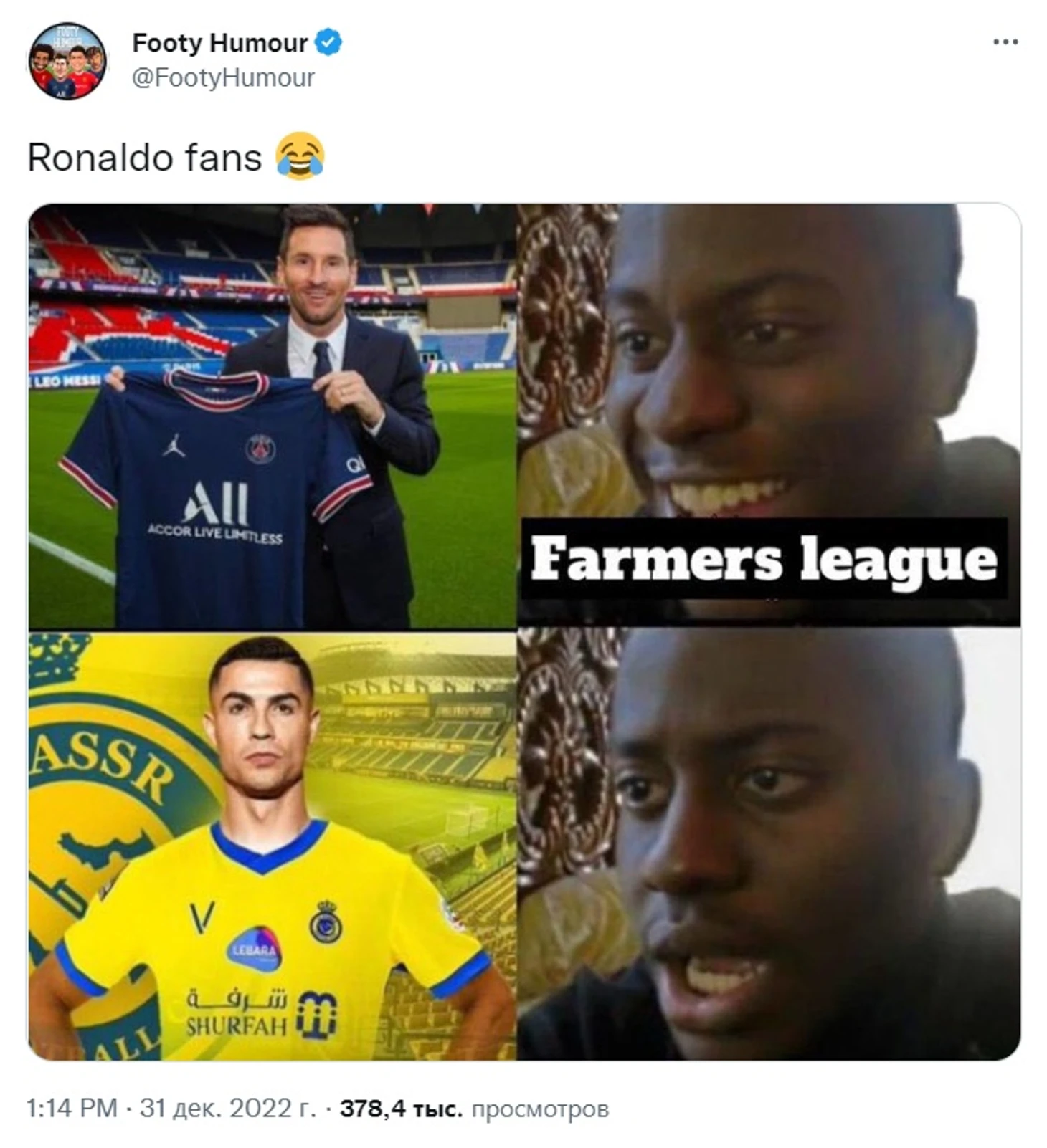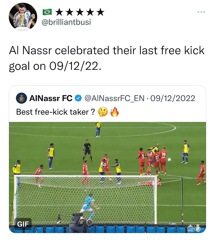 Фанаты Месси подкалывали как могли: «Последний гол со штрафного в истории «Аль-Насра» случился 09.12.2022». Намек на то, что с Криштиану таких голов можно не ждать.