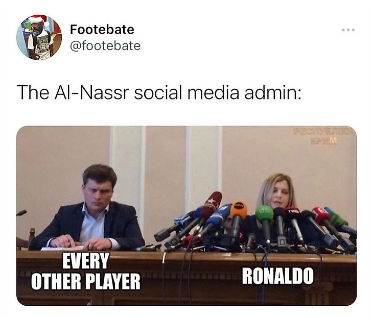 Над пресс-атташе «Аль-Насра» тоже пошутили: «Любой другой игрок vs Криштиану».