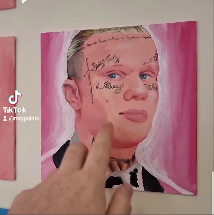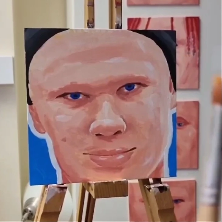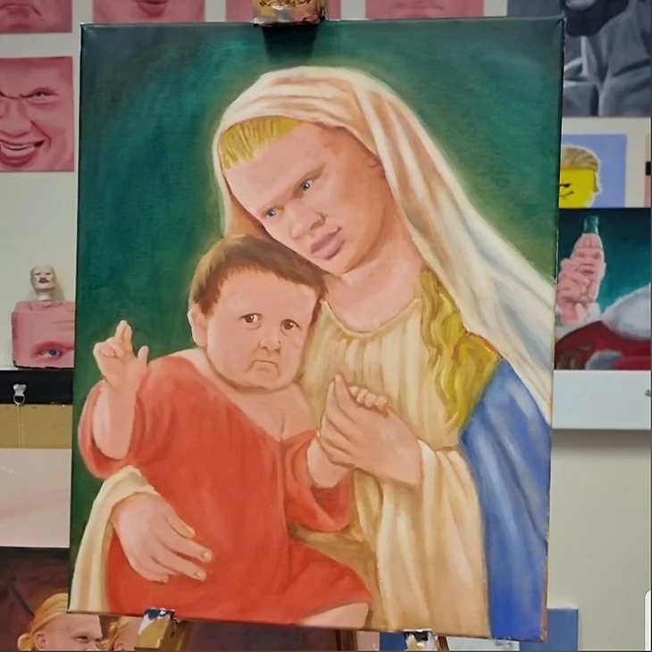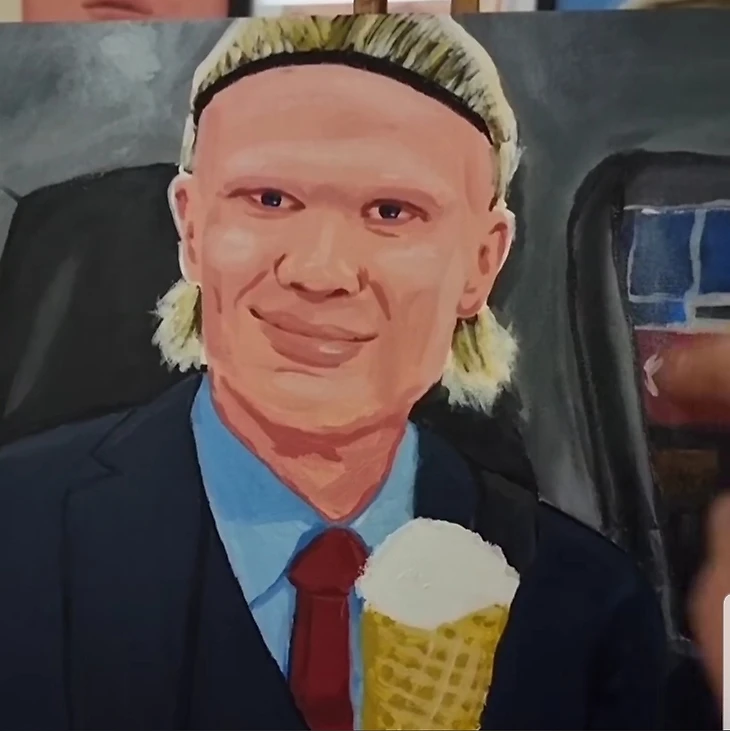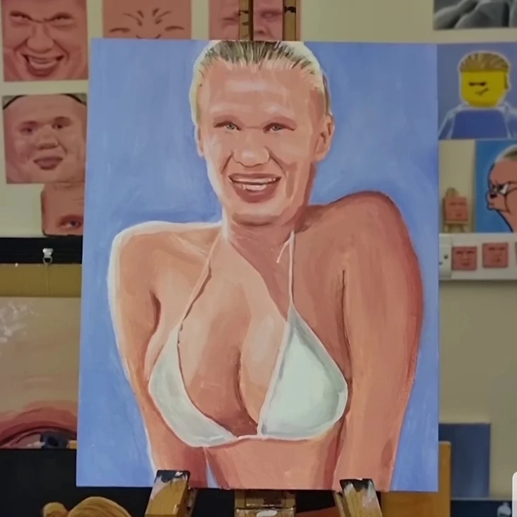 5 октября Холанд забил двушку «Копенгагену» в Лиге чемпионов, и в аккаунте @Rory.Paints появилась первая картина с лицом Эрлинга. Это было началом огромной серии работ. Каждый портрет сопровождался ироничным комментарием автора.