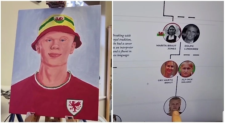 «18-й день рисования Эрлинга Холанда. Норвегия не отобралась на ЧМ, поэтому он будет болеть за вторую любимую сборную – Уэльс. Кто-то удивится, но на самом деле бабушка Холанда – из Уэльса».
