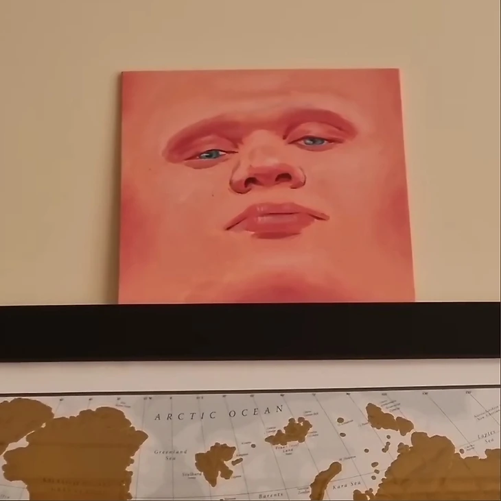 «16-й день рисования Эрлинга Холанда каждый день. У меня был холст со старой незаконченной картиной, но это дерьмо никто и никогда не увидит. Поэтому я нарисовал поверх Холанда. Это самый большой из портретов. Пока что».