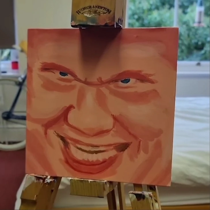 «22-й день рисования Эрлинга Холанда. Сегодня расскажу чуть больше про процесс. Сначала я грунтую основу. Потом пью белый русский на польской водке, потом немного рома и вырубаюсь. А когда просыпаюсь – портрет уже закончен».