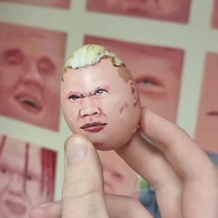 «С полок в магазинах пропали все яйца, поэтому я решил написать портрет на одном из этих драгоценных товаров. Вот вам яйцо-Холанд».