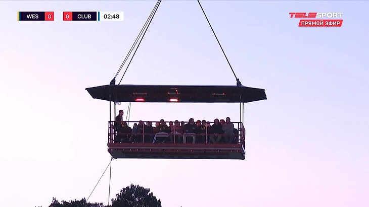 В «Вестерло» придумали способ добавить еще 24 места с помощью подвесной люльки, которую строительный кран поднял над стадионом! Вот как это выглядело с телекамеры.