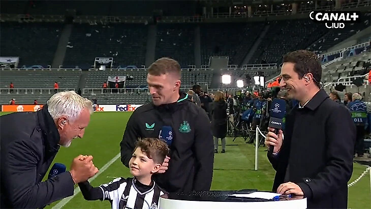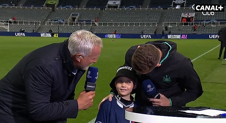 Прямо во время интервью сынишка снял футболку Мбаппе – и мы увидели, что под ней черно-белый «Ньюкасл», цвет победителей этого вечера.