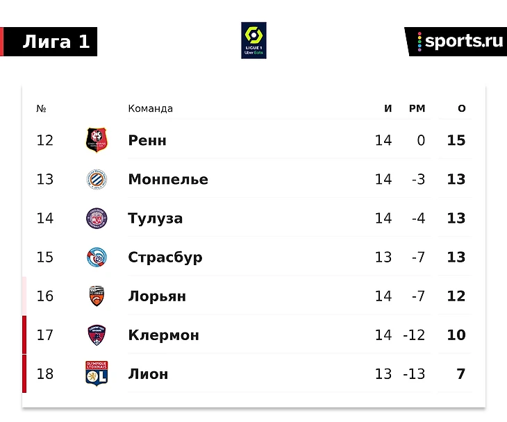 Но реальность такова, что клуб рухнул в зону вылета еще летом и никак не может оттуда выбраться. По итогам 14 туров «Лион» идет с семью очками – до предпоследнего места три, до стыков – пять, до спасительного 15-го места – шесть. Реже забивает только «Клермон», чаще пропускает только «Лорьян». Есть игра в запасе в среду, но соперник – «Марсель», еще и в гостях.