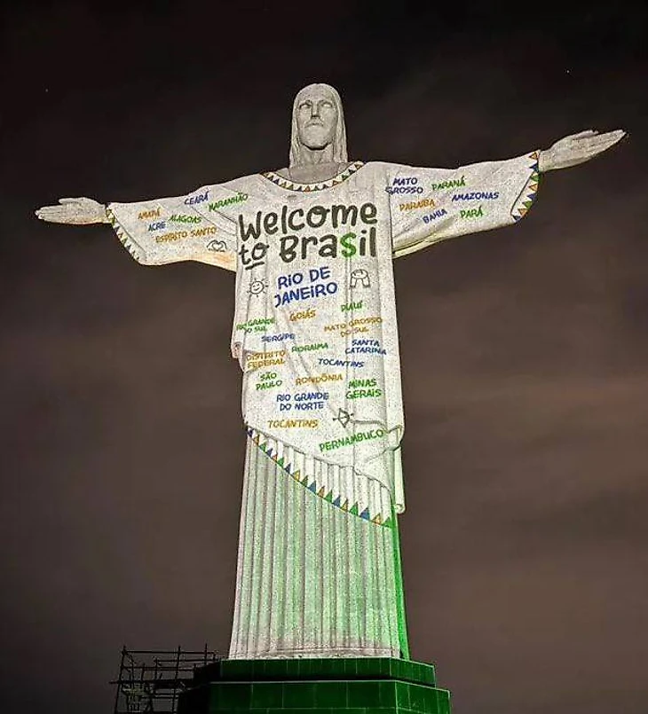 Вот как эффектно ее встретили в Рио: подсветили статую Иисуса названиями штатов, показав, что Свифт рады везде.