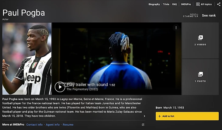 У Погба теперь есть даже карточки актера! Например, на сайте с крупнейшей базой о кинематографе IMDb: