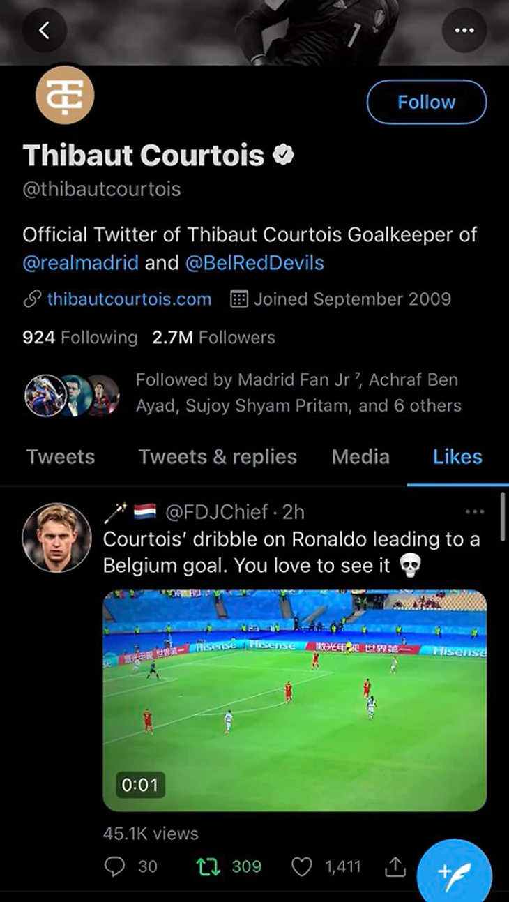 Куртуа всегда гордился собой. Эффектно обвел Роналду на Евро-2020, это заметили и выкатили пост. Всем приятно.