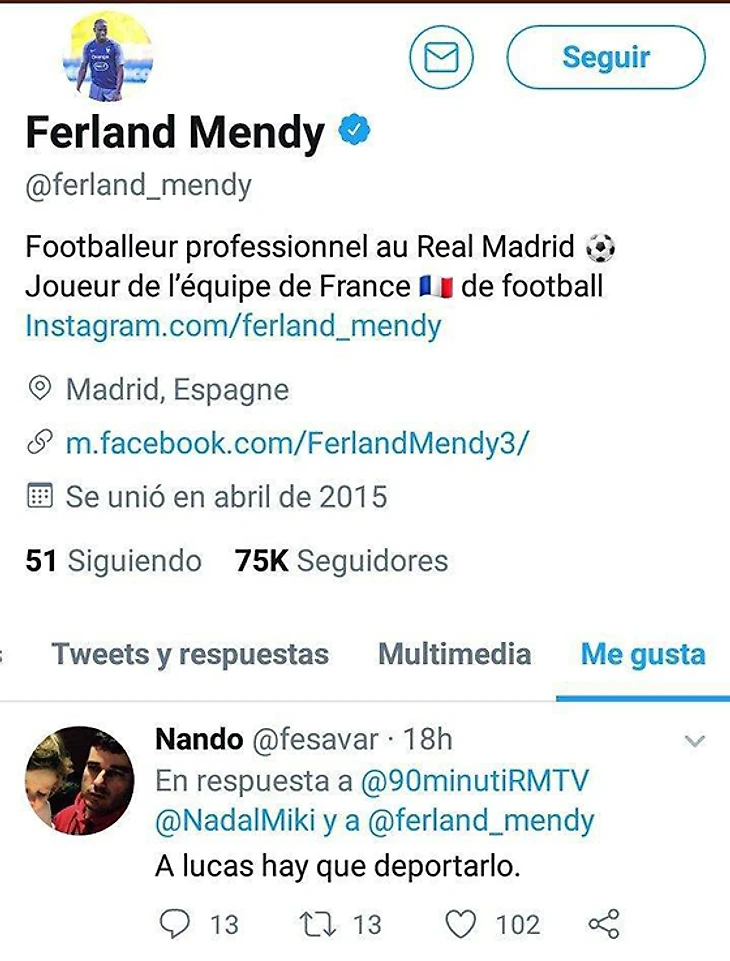 Смешная история из 2019-го: защитник Ферлан Менди только перешел в «Реал», не знал испанского и видимо случайно лайкнул пост с призывом депортировать из страны Лукаса Васкеса.