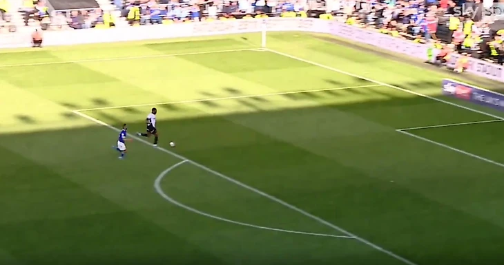 Полузащитник «Дерби Каунти» Эбу Адамс опередил вратаря «Кардиффа» Джака Алнвика после выноса и выбежал с мячом на абсолютно пустые ворота.