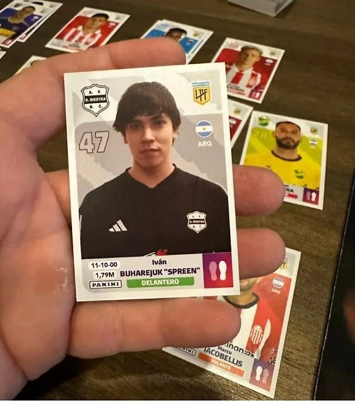 На днях его заметили среди карточек всех игроков чемпионата Аргентины от Panini. Перспективный нападающий.