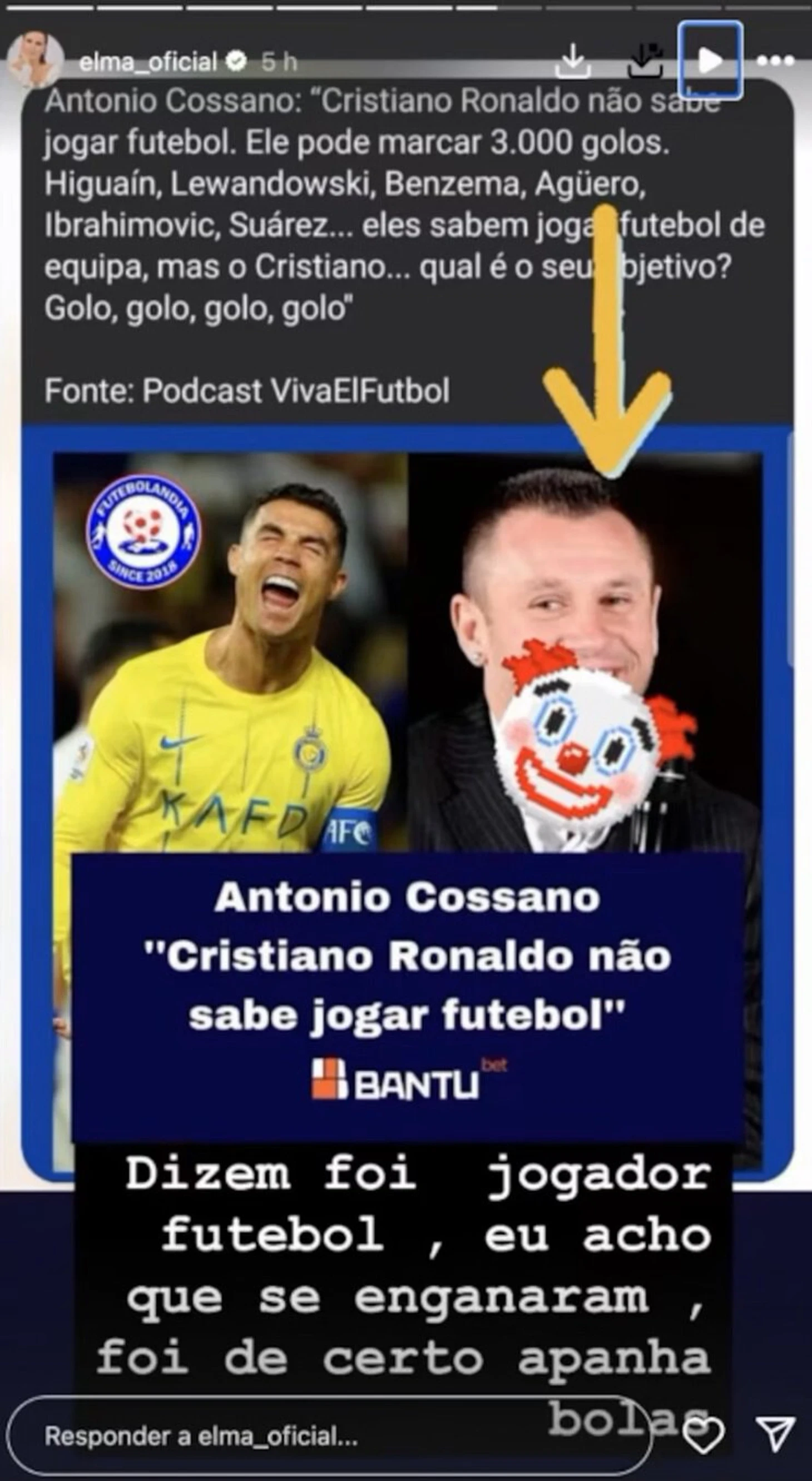 Такое заявление не могло остаться без внимания сестры португальца Элмы Авейры, которая поставила возле лица Кассано эмодзи клоуна и назвала его болбоем: