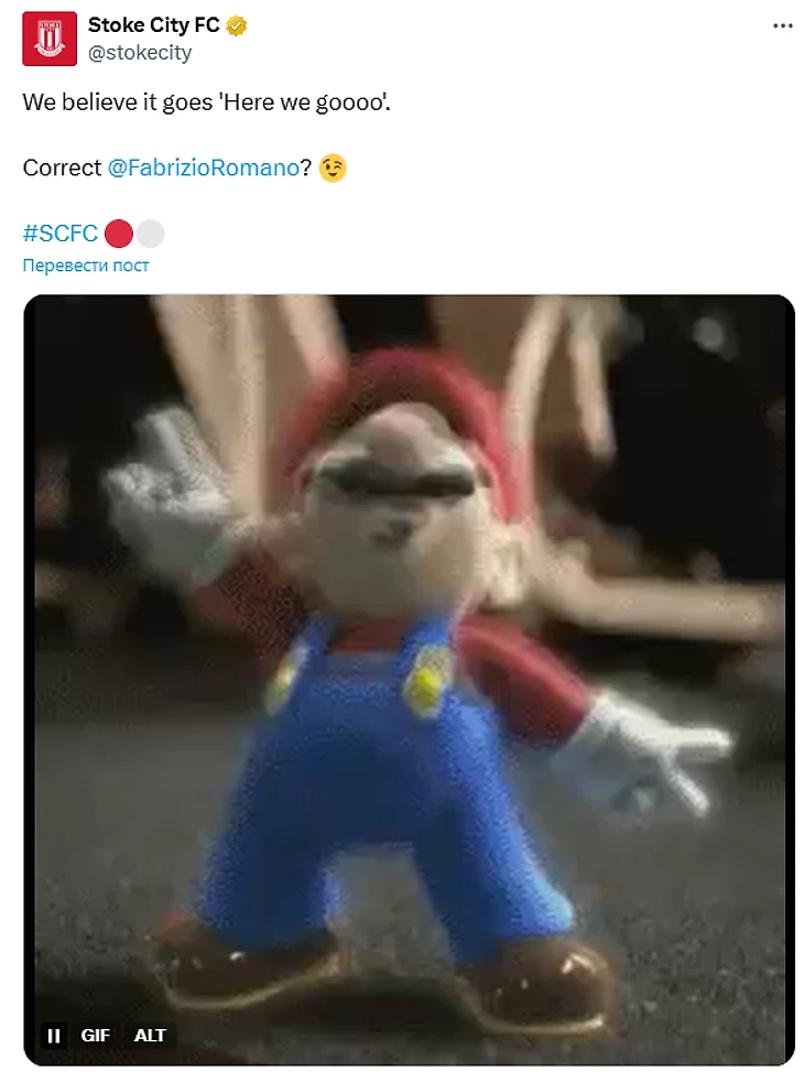 Клубы тоже периодически отставляли отсылки на Романо в соцсетях. Например, вот так «Сток Сити» в 2021-м объявил о подписании Марио Вранчича.