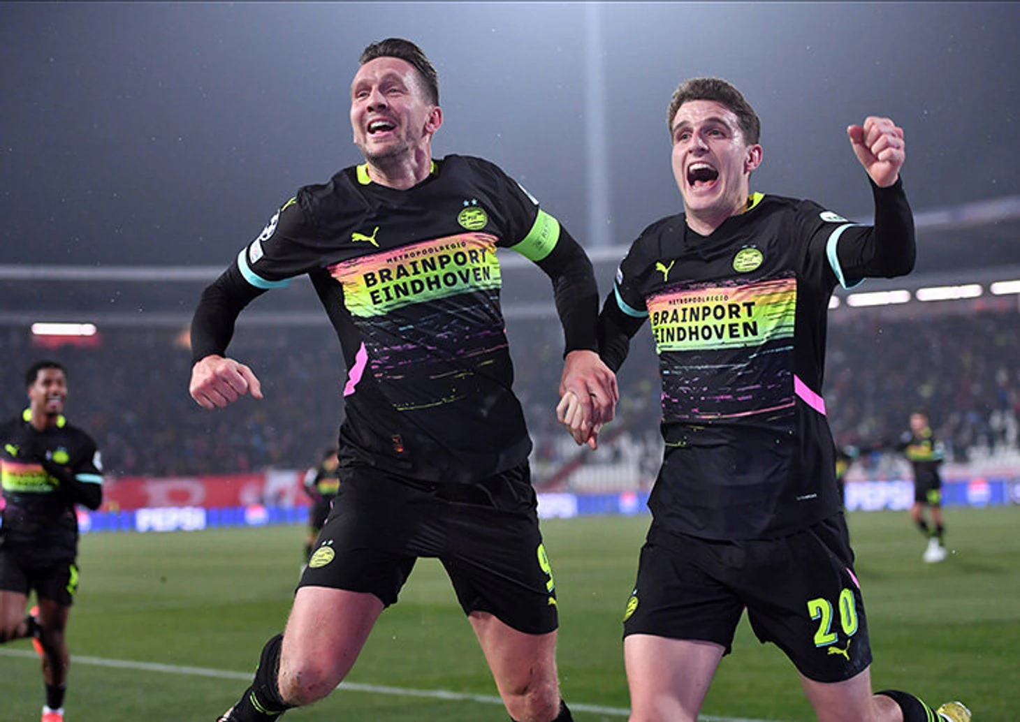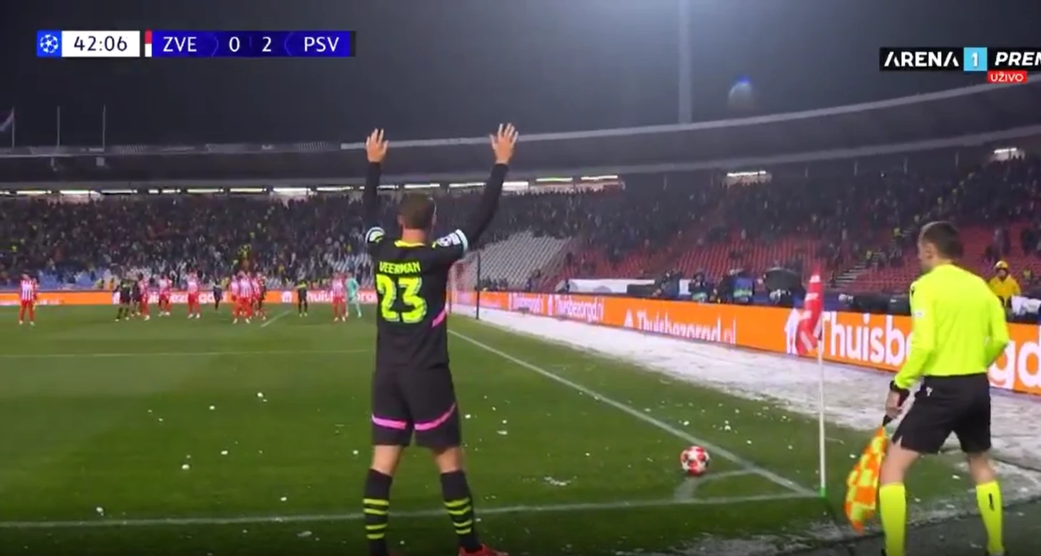 Во втором тайме «Црвена» почти отыгралась − после удаления Фламинго ПСВ стало тяжело. И да, хозяева тоже забили с углового.