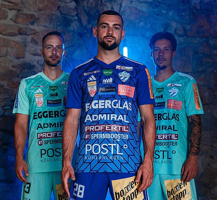 Новая форма австрийского «Хартберга» ломится от спонсоров: там 23 логотипа, в том числе огромная надпись «Profertil – Ускоритель спермы».