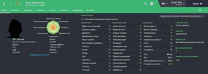 неплохой защитник, без особых провалов. Учитывая, что на него не будет потрачено ни копейки, можно считать это приобретение очень полезным. Да и скаут хорошо отозвался о нём. Да-да в нашей команде теперь есть скаут. По потенциалу сильнее любого нашего ЦЗ.