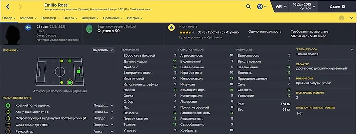 Т.к. все игроки из наших клубов-партнёров отказались к нам переходить, удалось неожиданно взять в аренду талантливого молодого форварда. очень скилластый по меркам нашей лиги, в прошлом сезоне наколотил 9 голов в нашем чемпионате, в том числе 1 моей команде. Т.к. наш основной форвард Mete отказывается продлевать контракт, пришлось в срочном порядке искать ему замену.