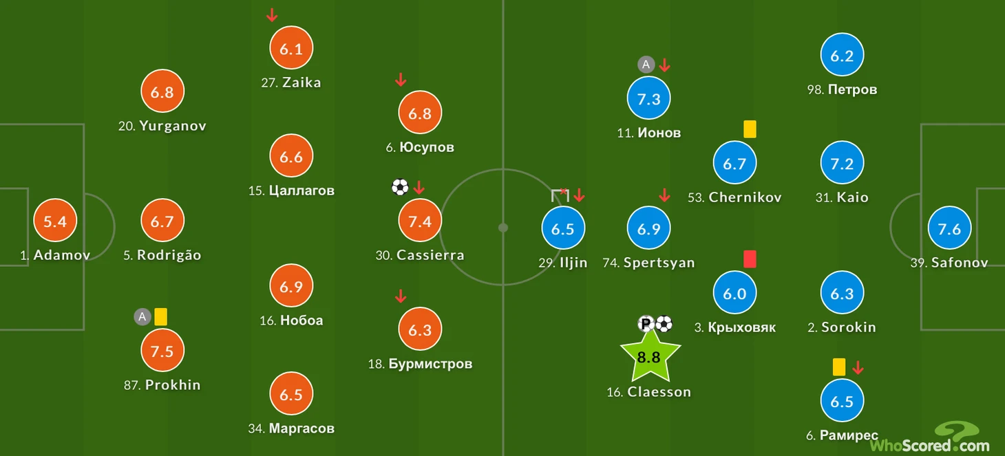 Классон - лучший игрок «Краснодара» в матче с «Сочи» по версии WhoScored. Гжегож Крыховяк является худшим игроком «быков»