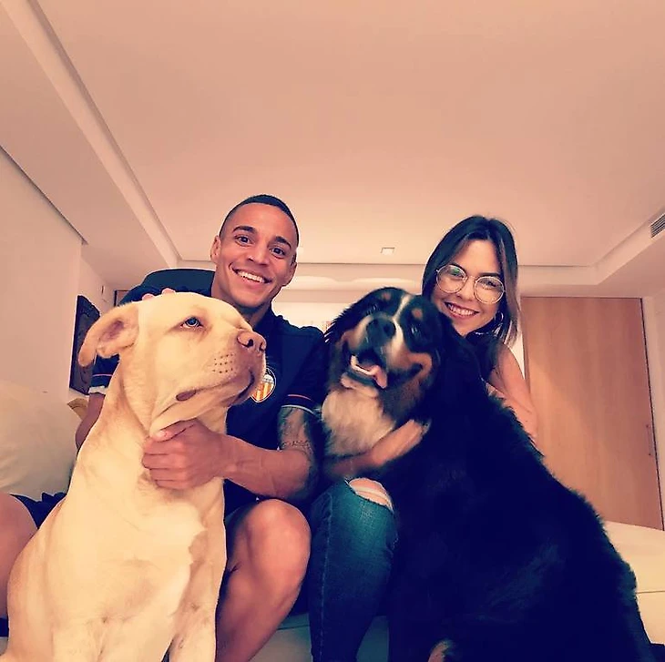 Нападающий "Валенсии" и сборной Испании Родриго с подругой и собакенами: