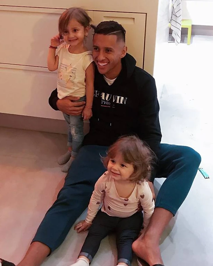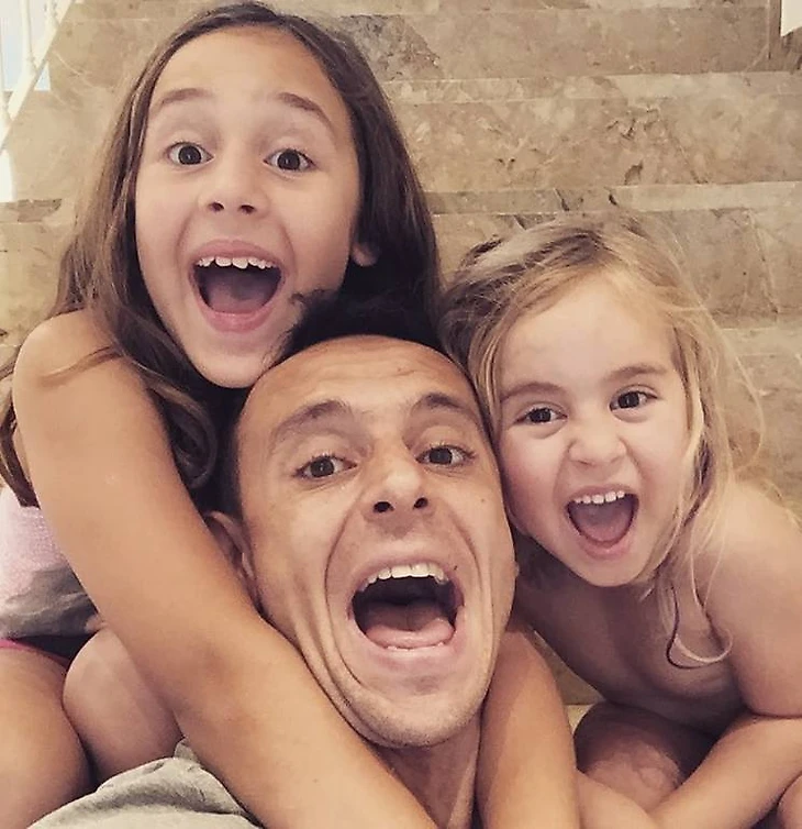 Защитник "Баварии" Рафинья веселится со своими дочурками:)