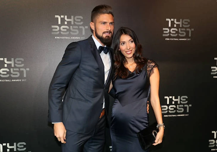 Оливье и Дженнифер Жиру на зеленой ковровой дорожке в Лондоне The Best FIFA Football Awards. :