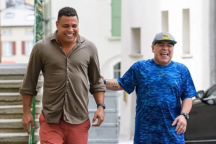 Роналдо и Марадона весело проводят вдвоем время после церемонии награждения The Best FIFA Football Awards. Диего угостил зубастика;)