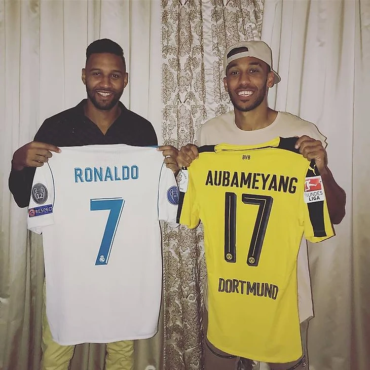 Вилли Обамеянг и Пьер-Эмерик Обамыч радостно демонстрируют трофеи после игры группового этапа Лиги Чемпионов с мадридиским "Реалом":