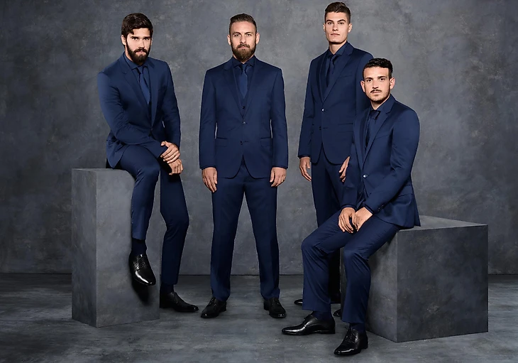 Элегантные костюмы от спонсора Hugo Boss примерили на себя игроки "Ромы" - Алиссон, Даниэле де Росси, Патрик Шик и Алессандро Флоренци:
