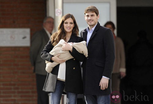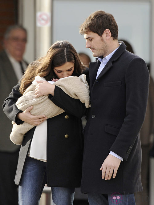 Выписка из больницы. Сара и Икер с новорожденным сыном Мартином: