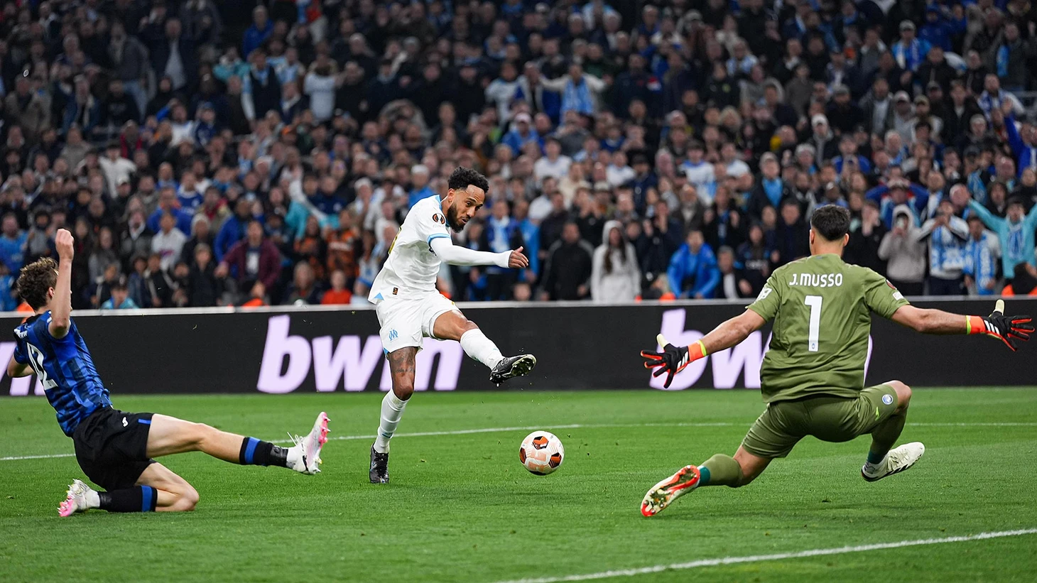 Уже на 11-й минуте матча, Мурильо потерял за своей спиной форварда «Аталанты» и Джанлука Скамакка открыл счёт в этой игре. У экс-форварда «Вест-Хэма» было время на то чтобы принять мяч, прицелиться и пробить в дальний угол ворот Пау Лопеса. Панамец Мурильо тем временем просто наслаждался атмосферой «Велодрома». 100-процентная ошибка Амира, которая привела к голу, 0-1. «Марсель» отлично отреагировал на пропущенный гол и продолжил наседать на ворота итальянцев. На 14-й минуте после хорошего прохода по левому флангу, бразилец Луис Энрике опасно навесил в штрафную, а бывший игрок «Марселя» Сеад Колашинац в попытке выбить мяч получил очередную травму. На моей памяти, это юбилейный 5-й раз когда босниец покидает поле «Велодрома» из-за повреждений. Ну, а второй гол в этом матче не заставил себя долго ждать. На 20-й минуте, после розыгрыша углового, Шансель Мбемба пробил из-за штрафной в дальний угол ворот и рикошетом от штанги мяч залетел в ворота, 1-1 и «Велодром» ликует.