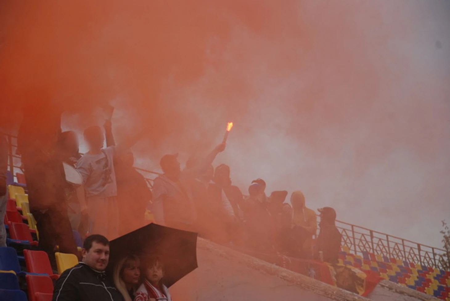 Команда устроила кучу-малу. Фанаты запалили файера. Стало как-то скучно. Матч скоро закончился, Некрасовке вручили Кубок городского округа Люберцы, они поскакали с ним, и всё.