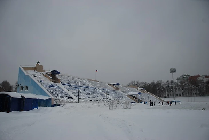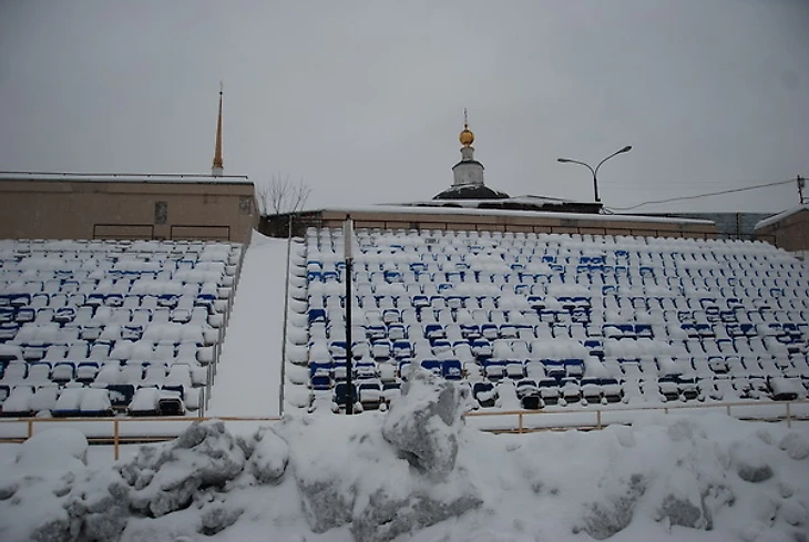 Как уже было сказано, трибуны завалены снегом. То, что их не чистят до наступления профессионального сезона, вполне понятно. Странно выполнять такую трудоемкую и дорогостоящую работу ради десяти (хорошо, пусть двадцати, тридцати и даже сорока) зрителей. Кому надо – посмотрит игру с беговой дорожки.