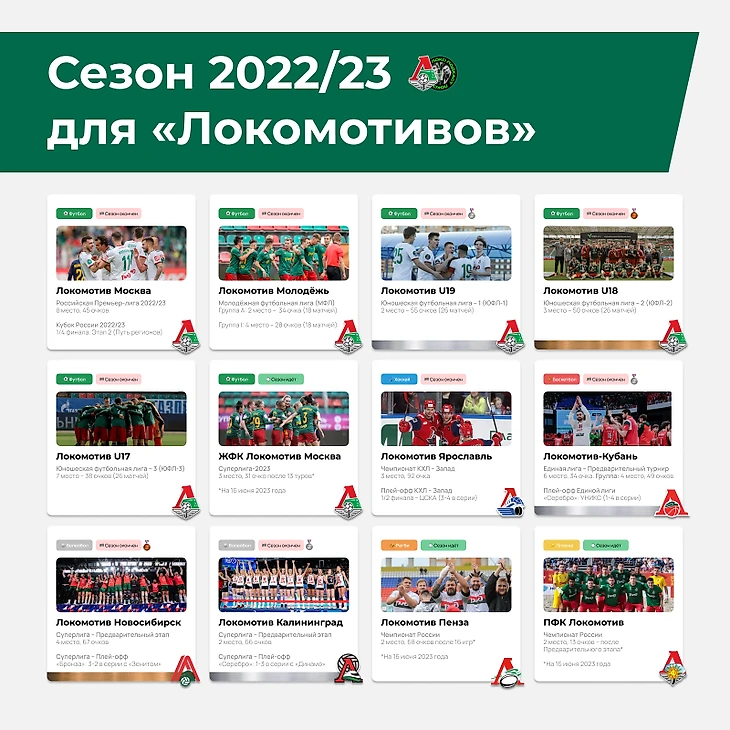 Сезон-2022/23 для «Локомотивов» в разных видах спорта