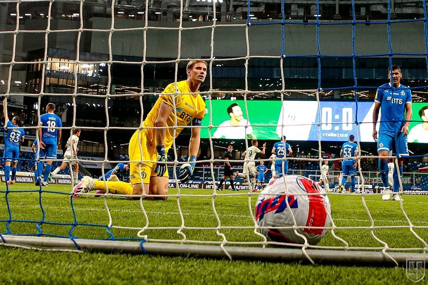 Но к чести «Динамо» команда быстро пришла в себя после пропущенного гола и ответила серией опасных атак: Сначала Фомин опасно пробил головой с углового, а затем, после шикарно разыгранной комбинации междую Тюкавиным и Шиманьски, опасно бил Макаров, но Гильерме был начеку!