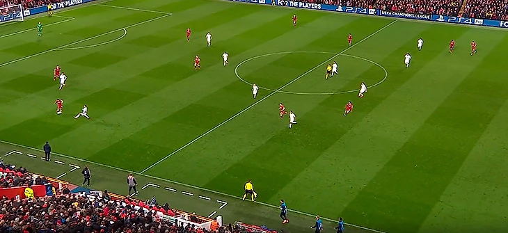 1. Третий гол Ливерпуля. Салах находится в ВЕРНОМ положении, защитник посередине задержался.