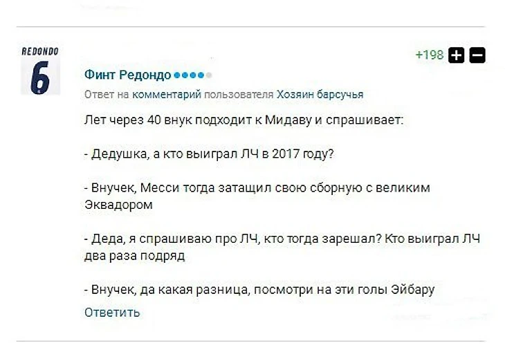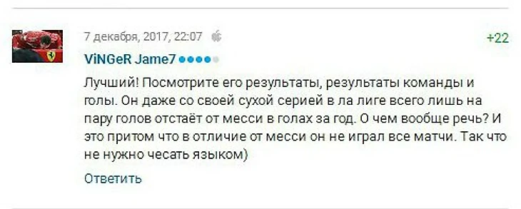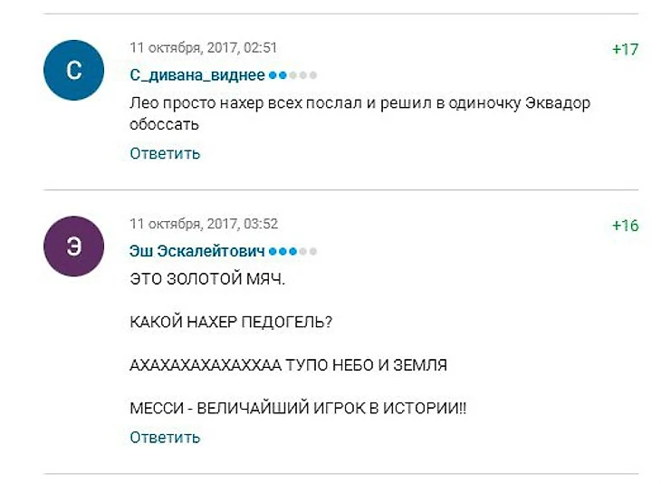 Но стоило Месси забить голы Эквадору и Эйбару, то сектанты тут же поменяли свое мнение и начали рассказывать, что никто недостоин ЗМ кроме Месси.
