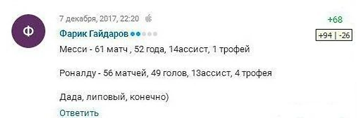 Хотя достижения Роналду и Месси за прошлый сезон даже смешно сравнивать.