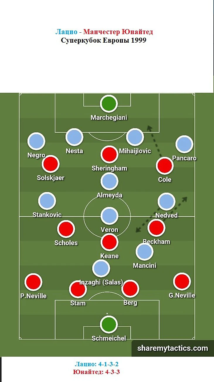 -- Припоминаю весьма живо! Фергюсон предав себя самого, выставил 4-3-3 с тремя хардкорными форвардами - Сольскяер, Шерингем, Коул.