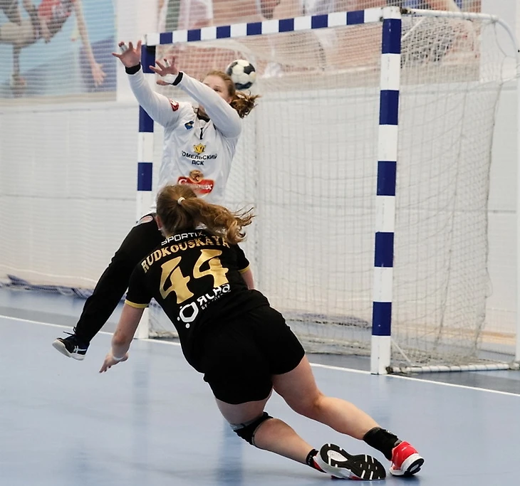 В первом тайме "Гомель" ко всему и неплохо оборонялся, сделав ставку на простую и надежную схему 6-0 с высокими Иринами — Мокат и Стельмах — в центре.