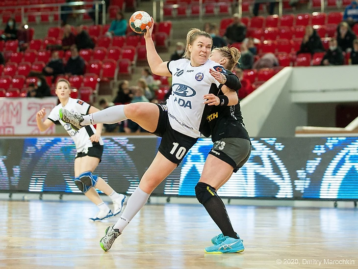 А вот их тольяттинская коллега Ольга Фомина была в полном порядке. Как и ее подруги в задней линии "ладушек". Алексей Алексеев, видя, что у соперниц его девчат подсела скорость, сделал ставку на быстрый гандбол — и не прогадал.