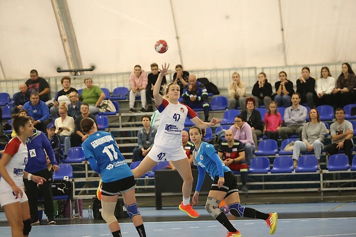 Полусредняя Арина Безбабных один из мячей снова забросила с края. Также из положительных моментов — сразу два дебюта. 18-летняя разыгрывающая Алина Загороднева (запоминайте — №9!) не постеснялась дважды угрожать воротам чемпиона, правда, поразить их не удалось. 16-летняя крайняя Арина Прокофьева (№28 — тоже пригодится) за 15 минут бросками не отметилась.