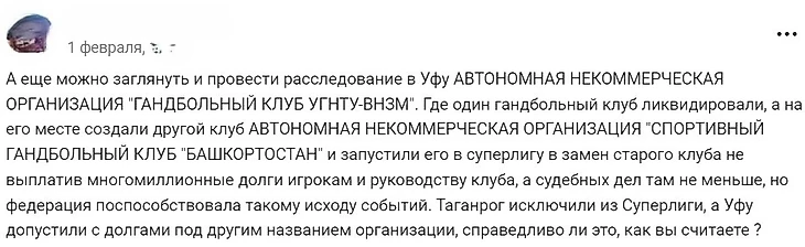 В статье про зарплаты гандболистов мы получили вот такой комментарий от читателя нашего блога: