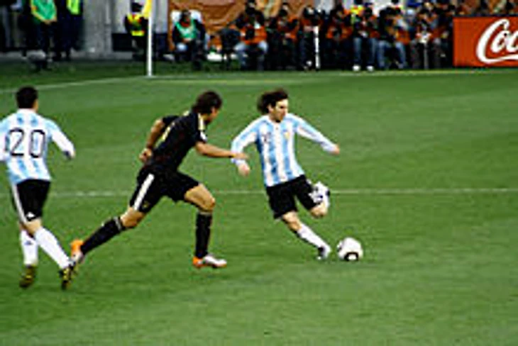 Хедира (в тёмном) в против Лионеля Месси (справа) на чемпионате мира 2010 года