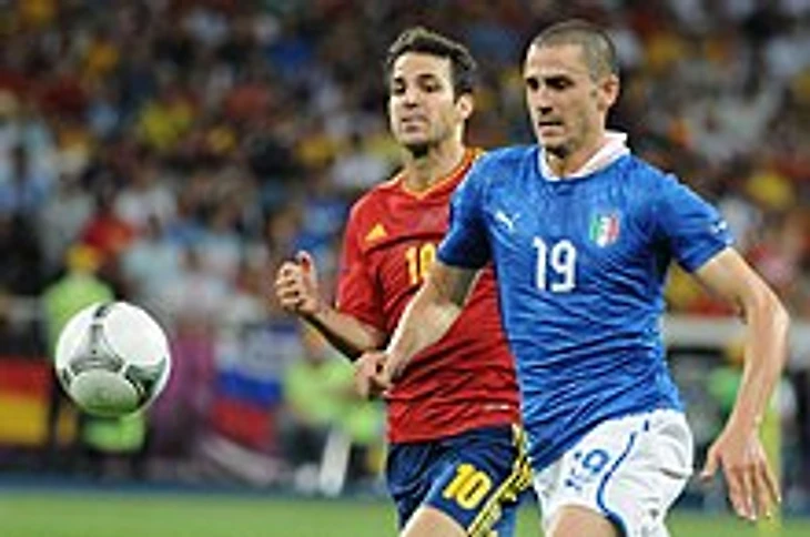 Бонуччи (справа) борется с Сеском Фабрегасом в финале Евро-2012